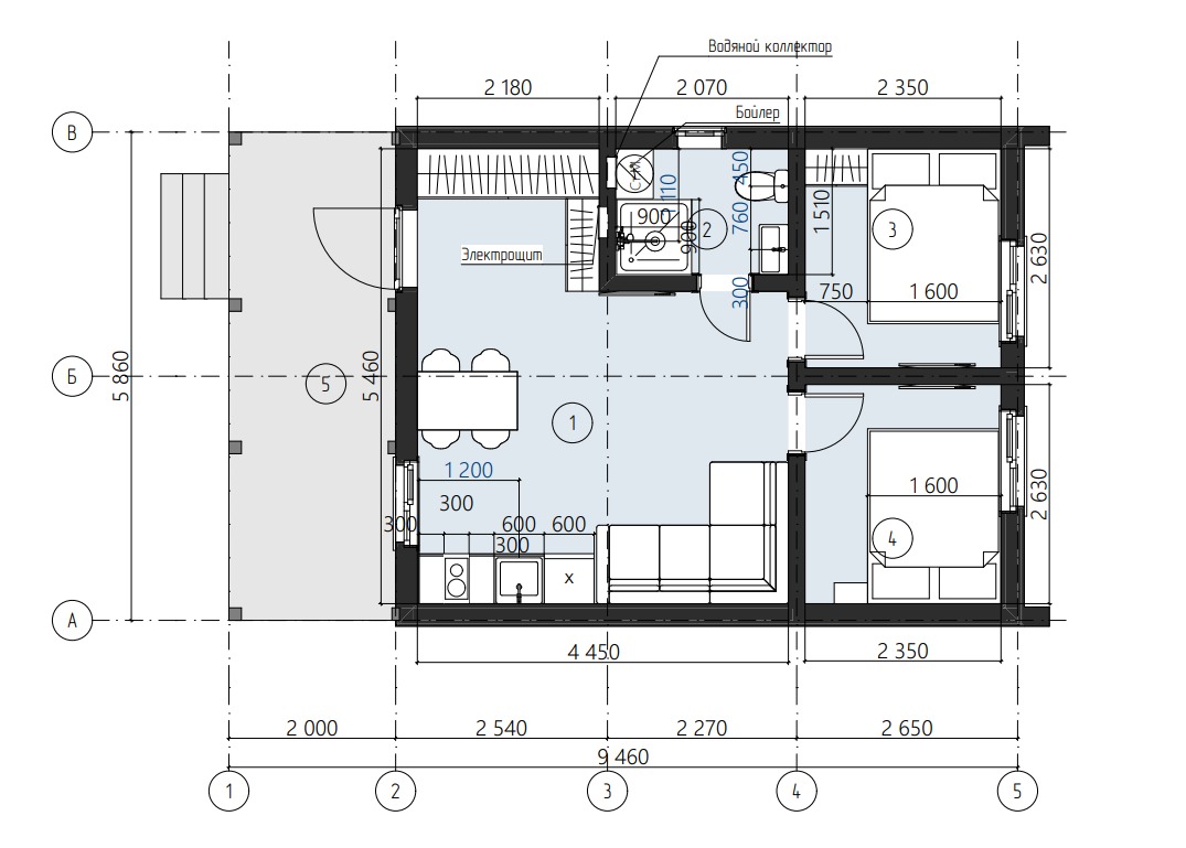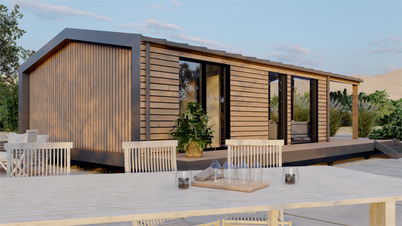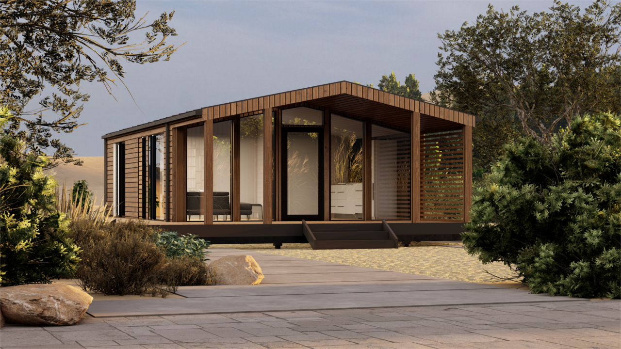 Барн-45 – модульный дом в стиле Барн, предназначенный для круглогодичного проживания, площадью 45 м², включает в себя 2 спальни, кухню-гостиную и санузел. Отличное решение для гостевого дома, загородного глэмпинг-отеля или под баню.(Размер дома по внешнему контуру)