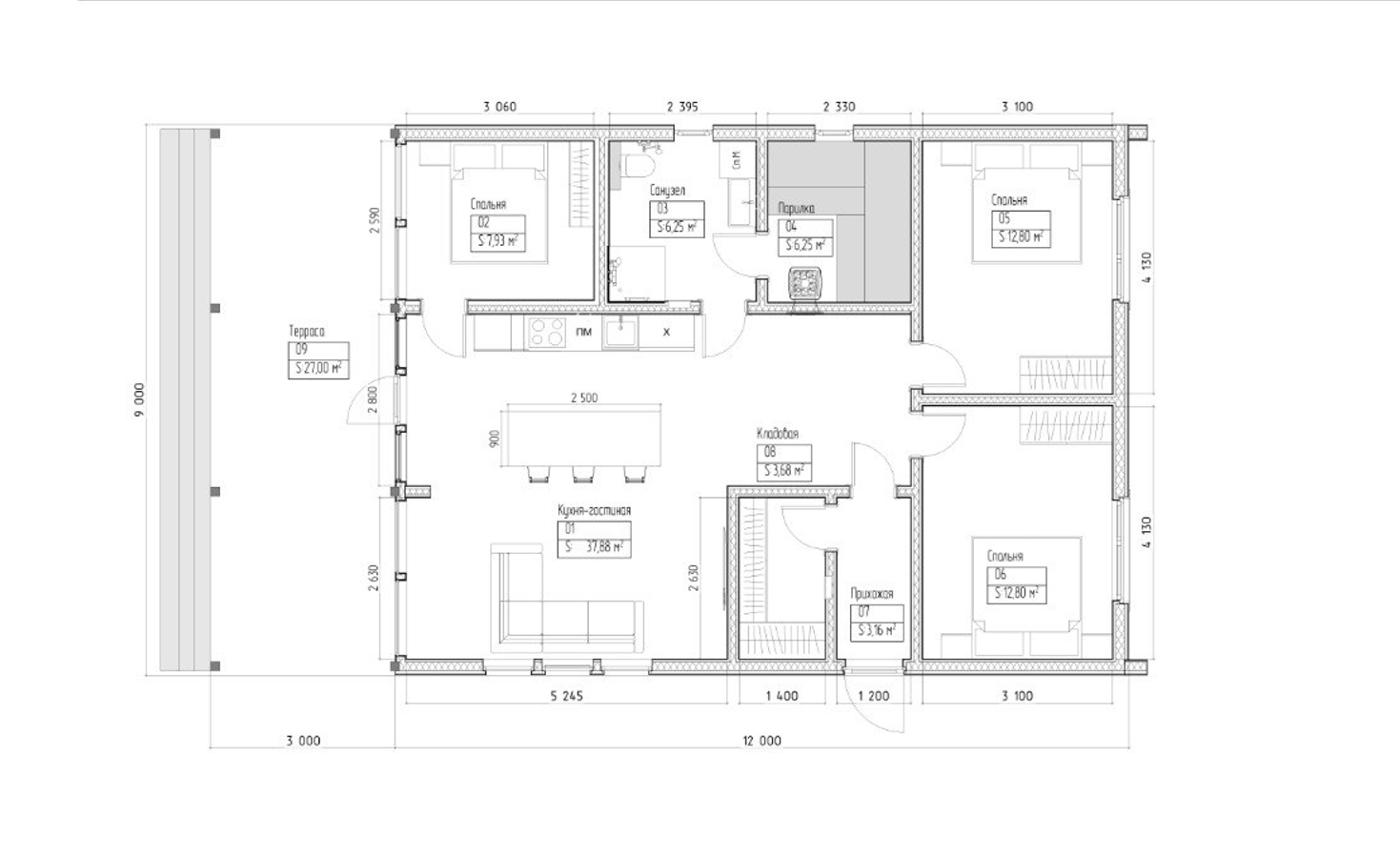 1. Аттиковая стена достигает высоты 2,5 метра от пола до потолка, создавая ощущение простора.