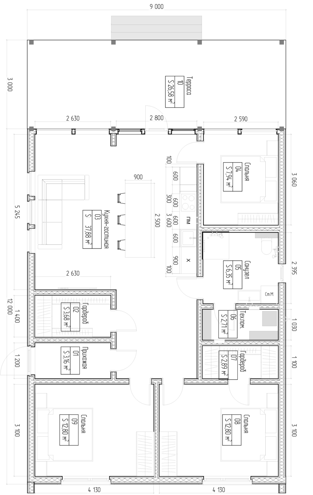 | Общая площадь | 128,9 м² |